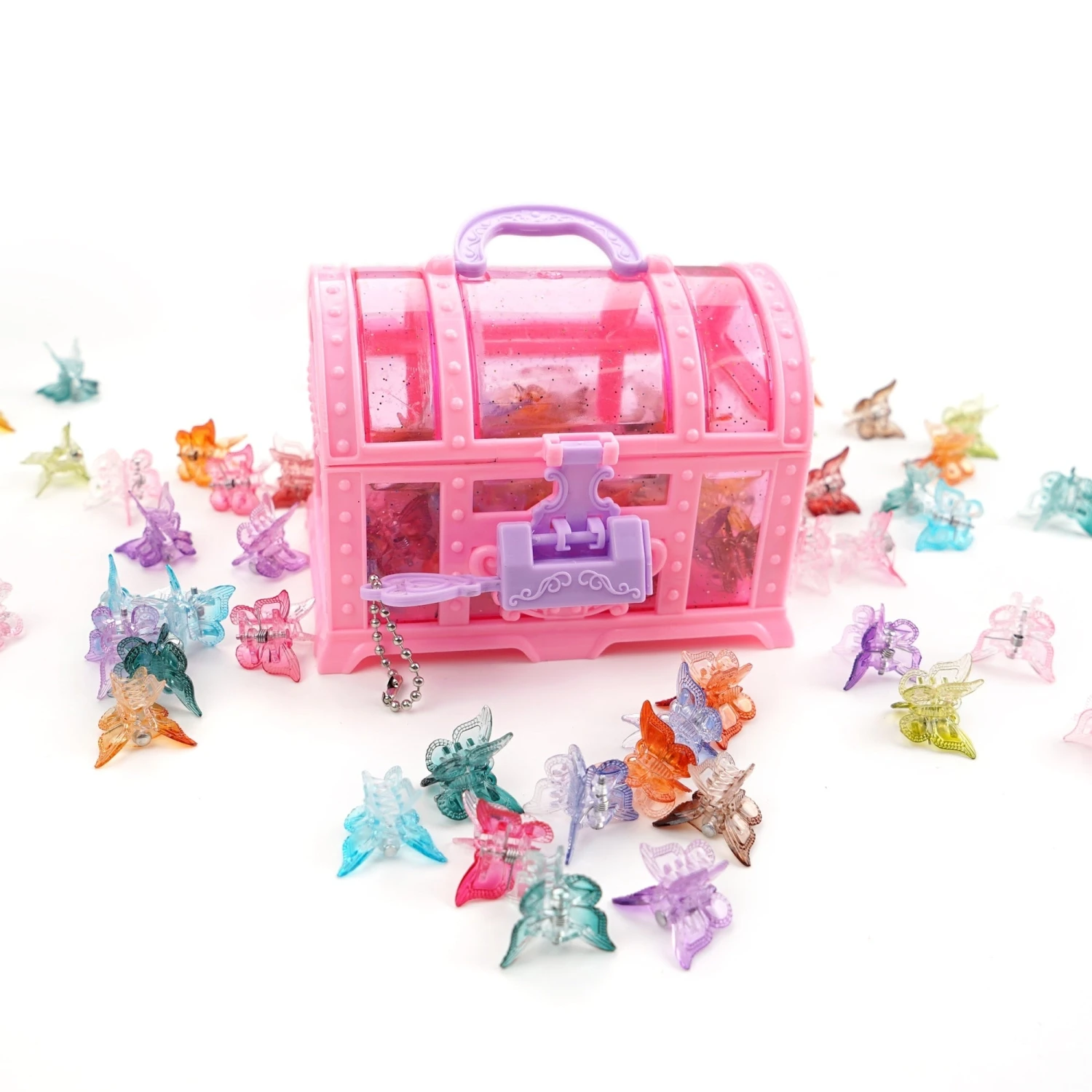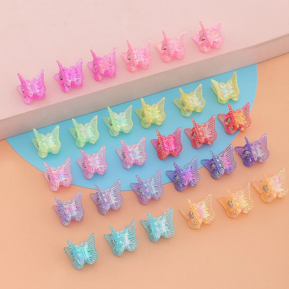 - This batch includes 50 small butterfly hair clips in a variety of colors.