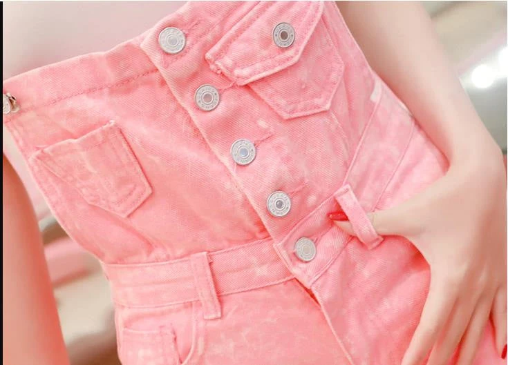 - Choose from a hot pink acid wash, light blue jeans, or jet black denim!