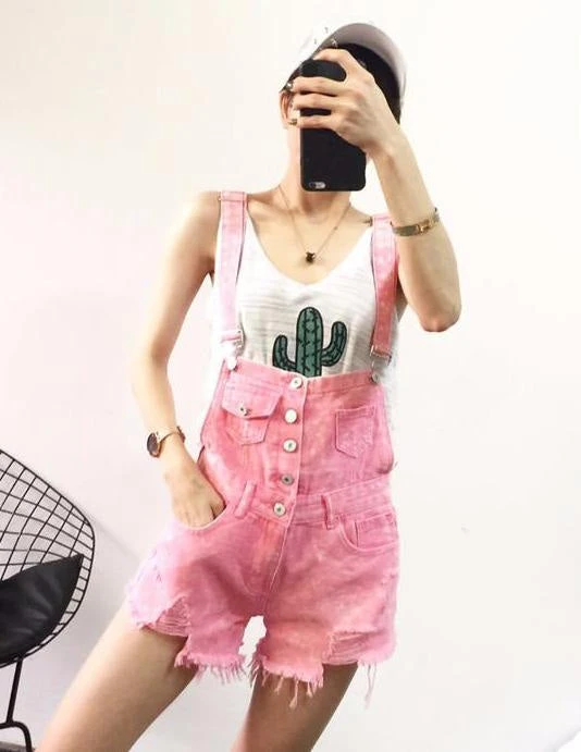 - A sweet pair of distressed jean acid wash dungarees that are ready to play.