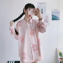 - This adorable pastel pink baby bear vintage inspired blouse is a must have for any kawaii babe