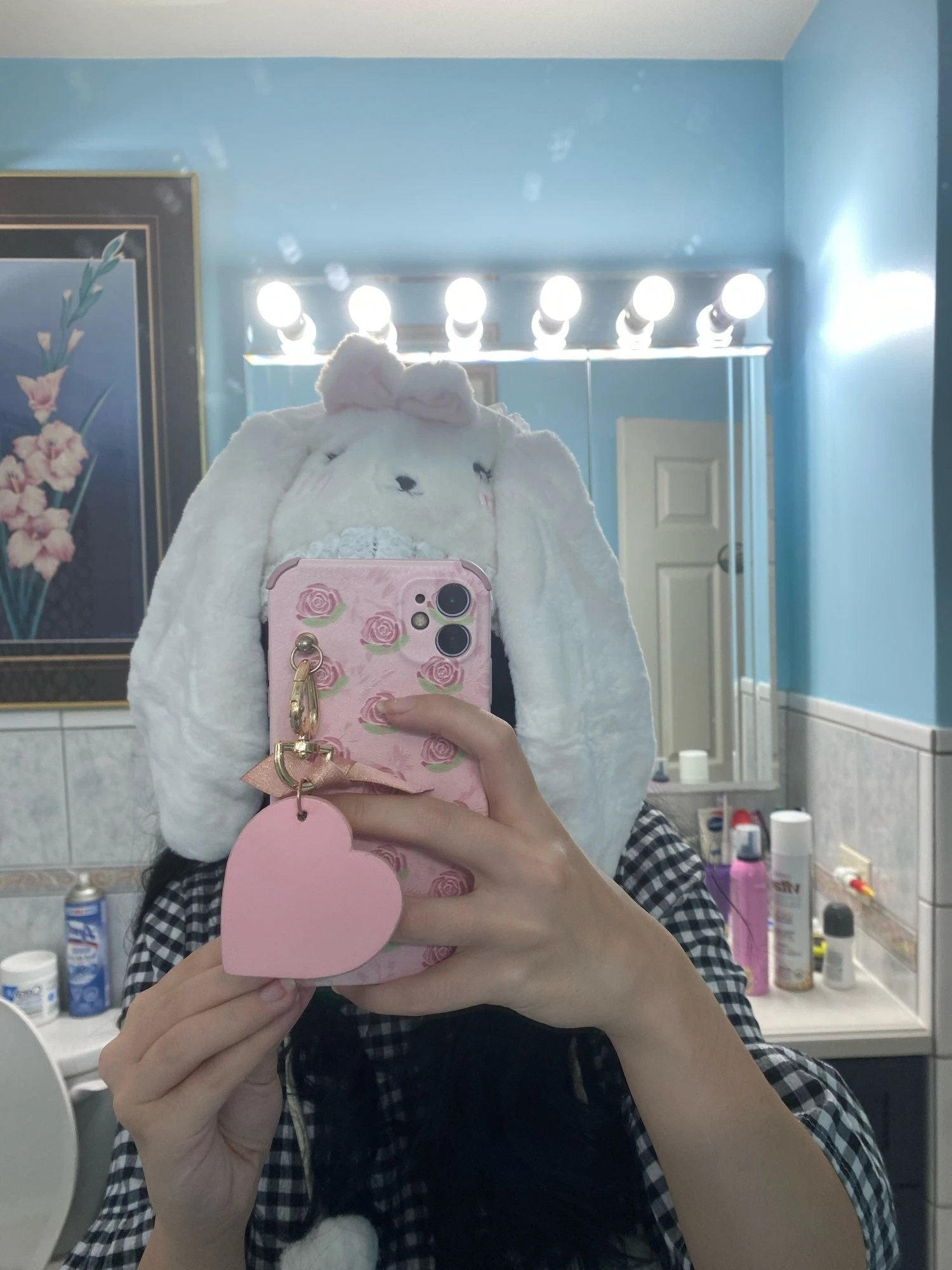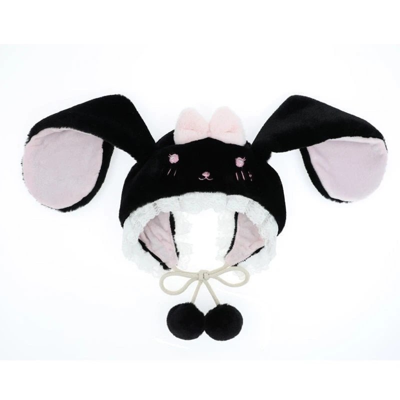The little ears spin are floppy & kawaii, with hand embroidery details and pompom closure.Â