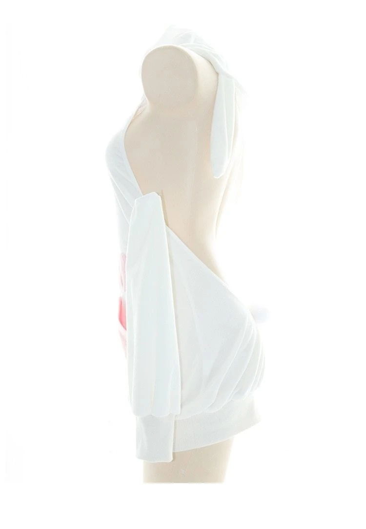 - Featuring a giant pink paw print on the front, sheer long sleeves, cute open back design, and a big oversized bunny ear hoodie!