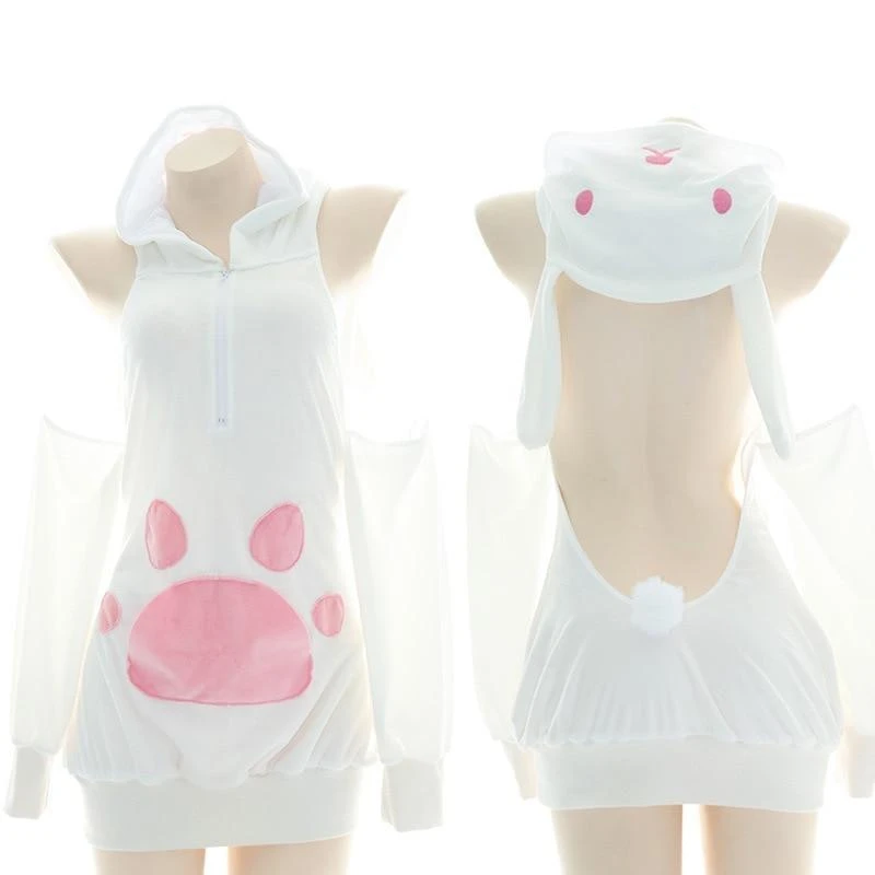 -  This precious white & pink paw embellished bunny hooded sweater dress will transform you into the cutest kawaii bunny ever!