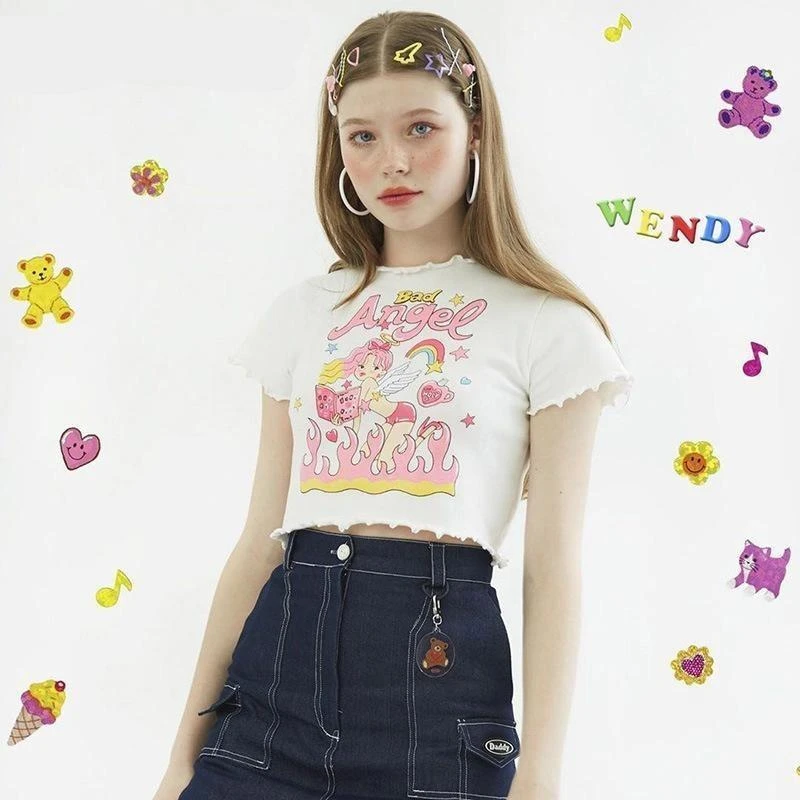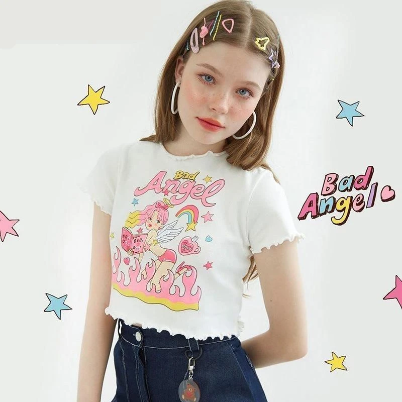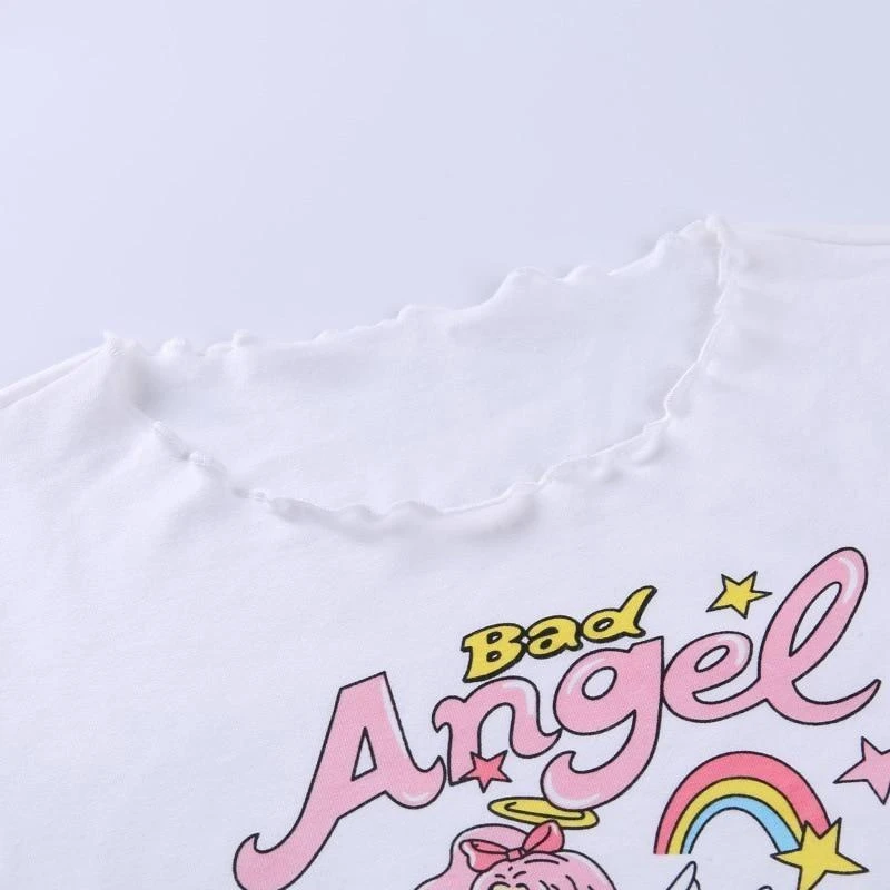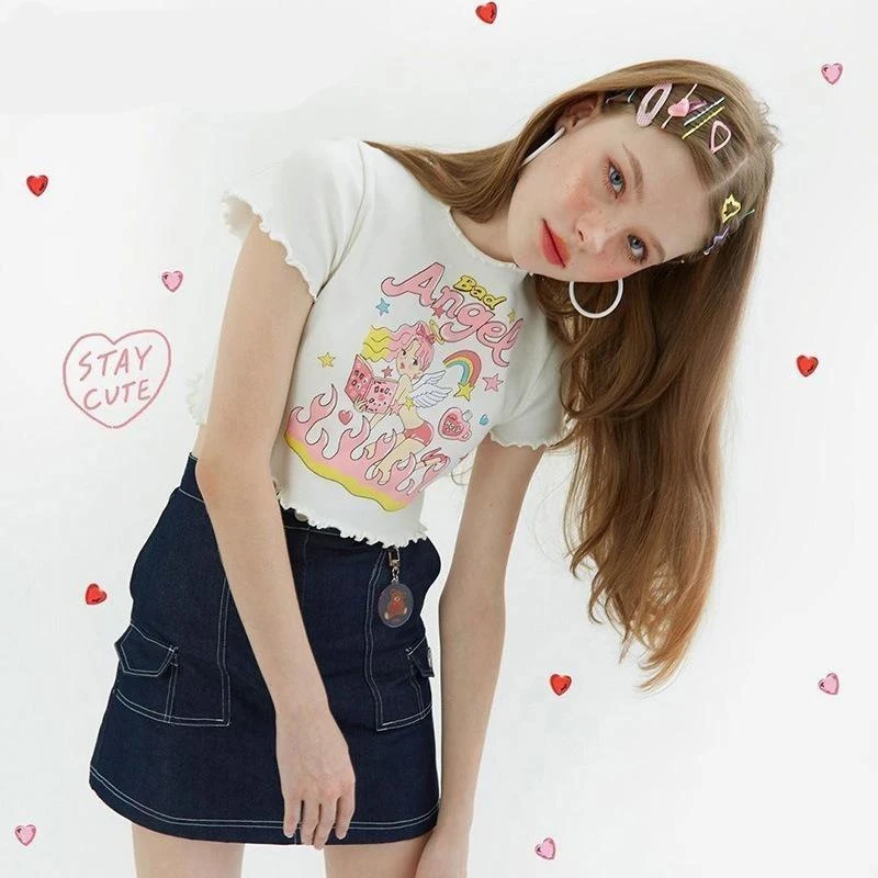 - This adorable angel inspired girly crop top is so cute and innocent, you’ll embody the sweet angel you are… with a edgy twist!Â