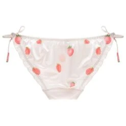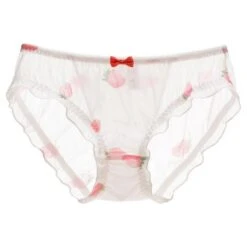- These sweet white & red strawberry patterned undies features adorable strawberries and a ruffled lace trim with a sweet ribbon / bow on the front!