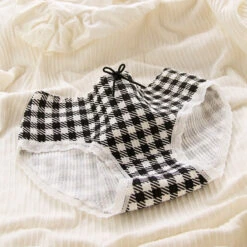 - Kawaii Plaid Design: Featuring a classic black or black plaid pattern, these undies are both cute and stylish, perfect for any kawaii fashion lover.