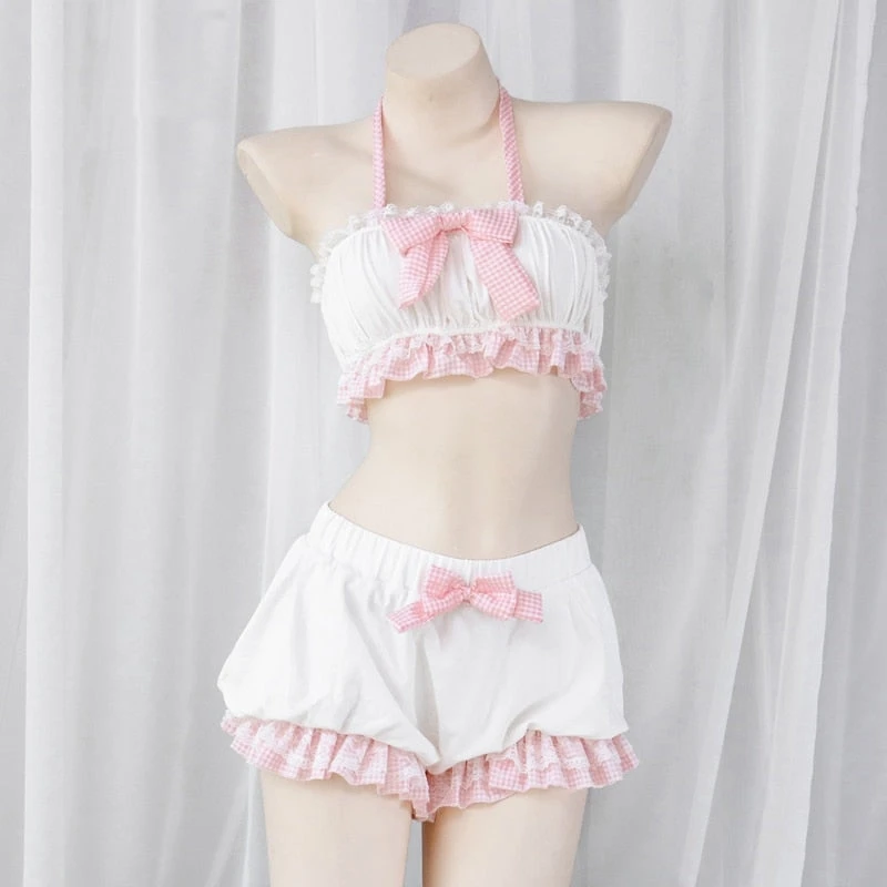 - This sweet pink plaid baby lingerie set combines the innocence of youthful bows and ruffled sleeves, with the sex appeal of just the right amount of bare skin. 😉Â