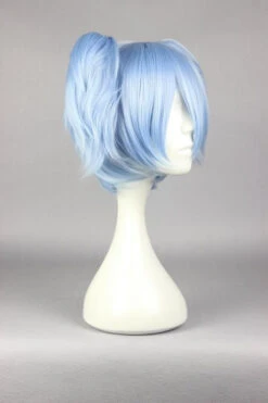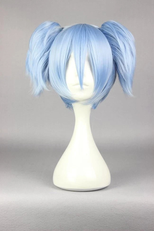 - A stunning pastel blue short length wig cut into a flattering double pigtail hairstyle that is very kawaii.