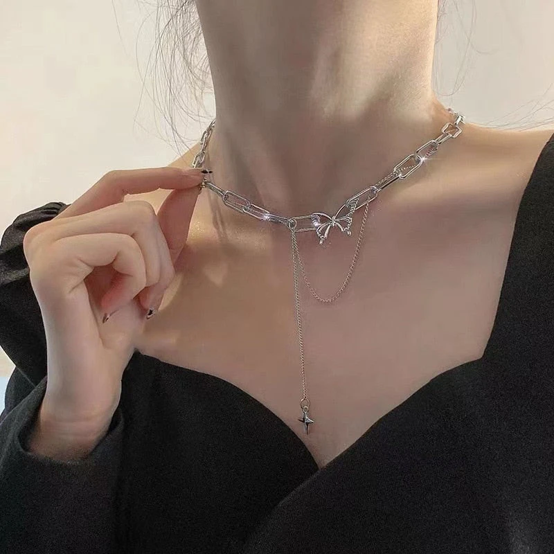 Introducing the Butterfly Dainty Chain Choker, a stunning accessory that brings a touch of elegance and kawaii fashion to any outfit. This delicate piece is perfect for those who love a cute and dainty look with a little edge.