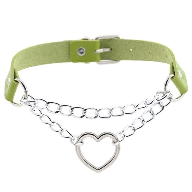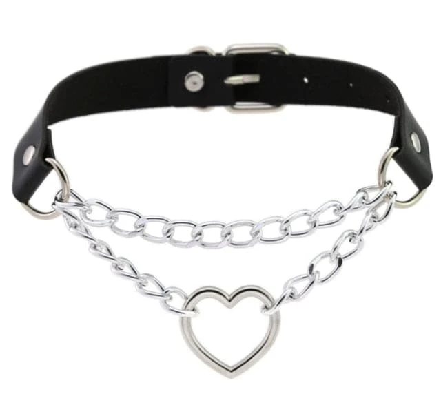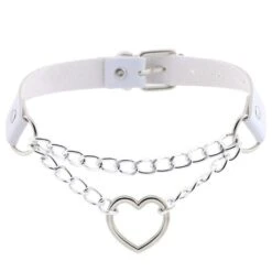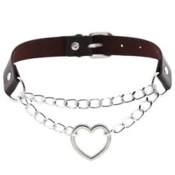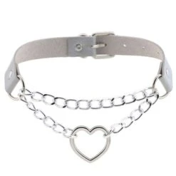 -  This gorgeous thick vegan leather chained heart choker necklace has quality shiny silver hardware, belted buckle closure, and screams “princess”!Â