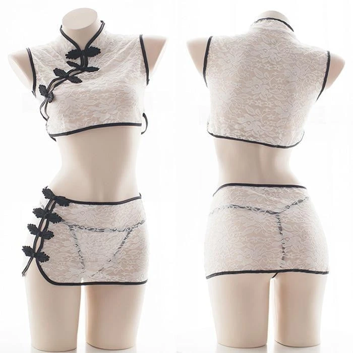 - This exquisitely detailed oriental chinese inspired lingerie set has traditional asian influences, with peekaboo lace fabric and beautiful asymmetrical fastenings.Â