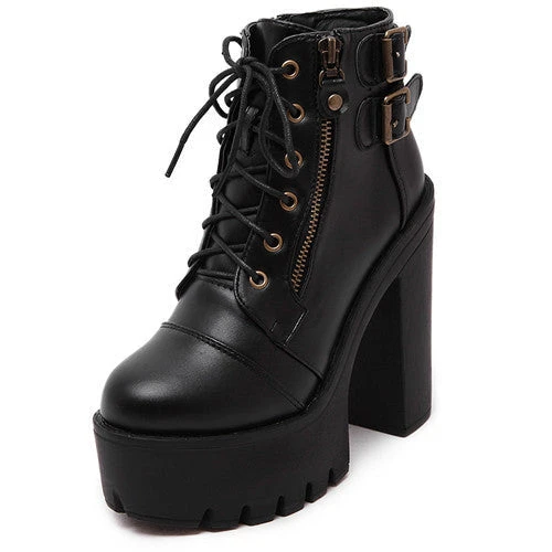 - These edgy punk rock inspired chunky block heeled booties are simply to die for!