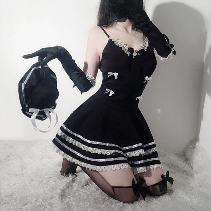 - This sweet traditional lace & ruffle french maid inspired dress has bows, frills, and cute little ruffles in all the right places!