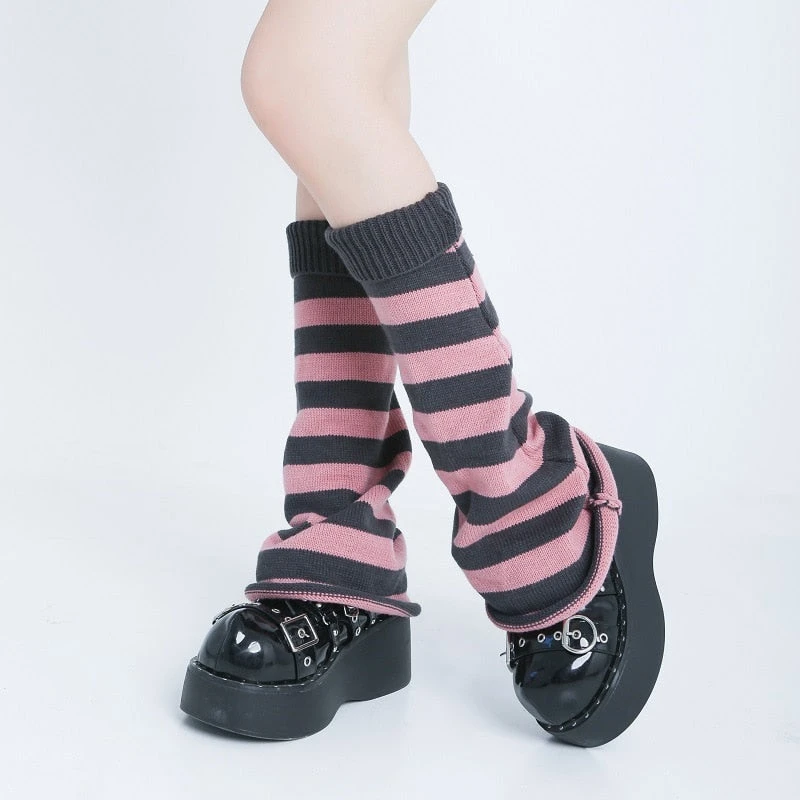 - Striped Design: Featuring bold, alternating pink and black stripes, these leg warmers are eye-catching and trendy, ideal for creating an edgy, laid-back style.