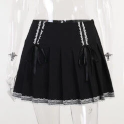 This luxurious and kawaii gothic black corset skirt has details to die for!