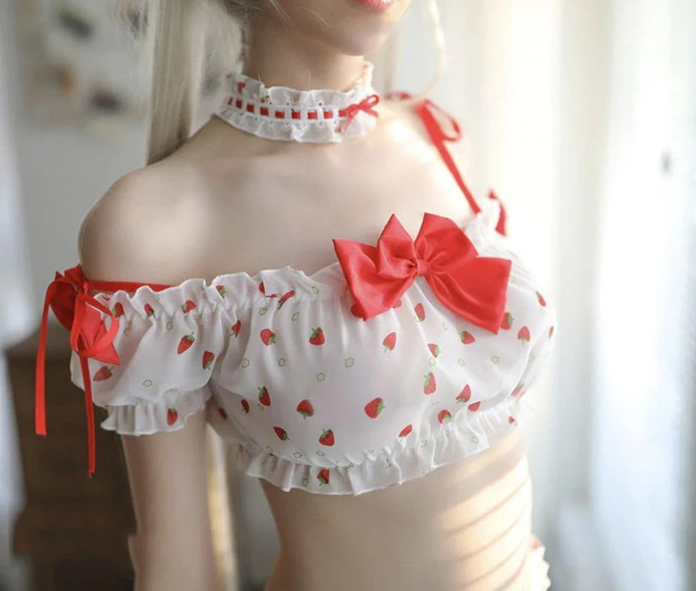SKU: A2F3Y 1958438142040 Categories: Crop Tops, Tops Tags: Berries, Berry, Bloomer, Bloomers, Cosplay, Cosplaying, Costume, Costumes, Country girl, Crop top, Crop tops, Cropped top, Hearts, Kawaii, Kawaii babe, Kawaii fashion, Lingerie, Ruffles, Shorts, Strawberries, Strawberry, Sweet
