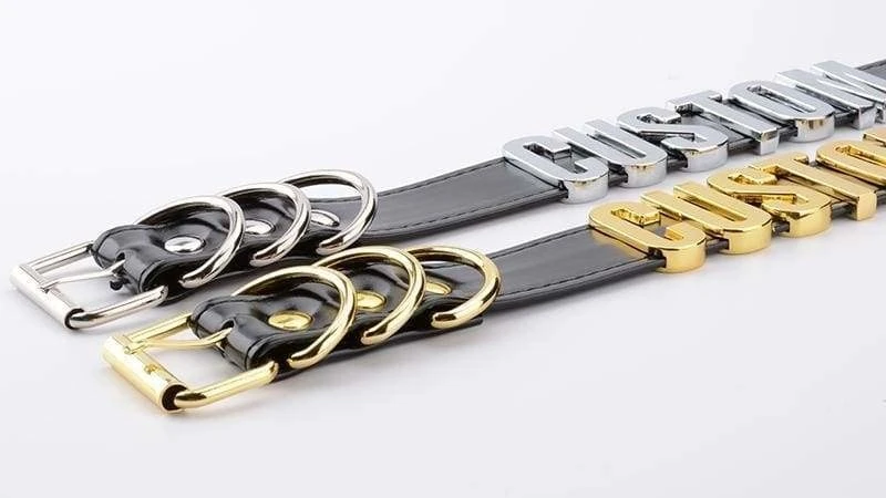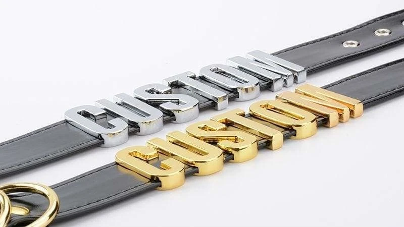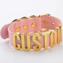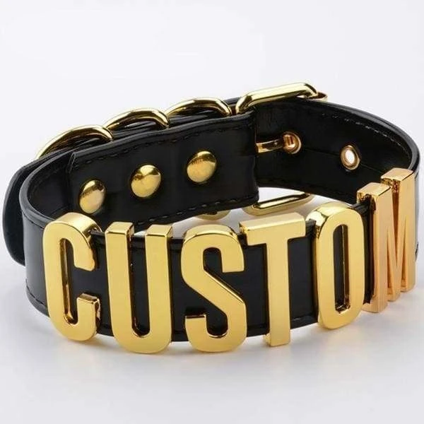-  This gorgeous vegan leather fully customizable choker necklace has quality shiny gold hardware, belted buckle, and can say literally ANY statement you want!Â
