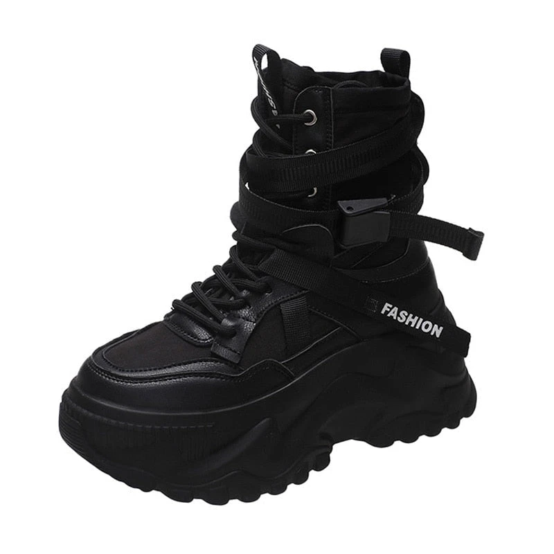 - Edgy Design: Available in classic black and crisp white, these sneakers feature a unique, futuristic design that combines bold straps with chunky platform soles for maximum impact.
