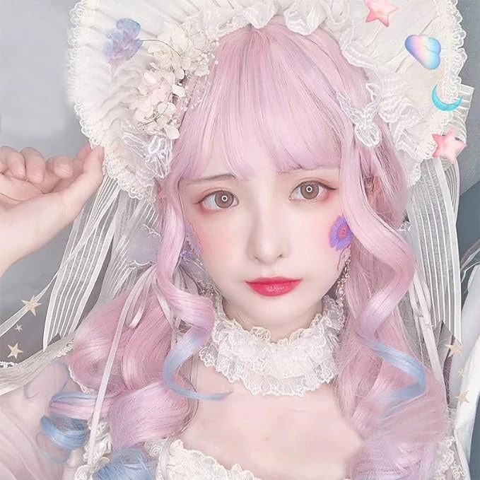 - This stunning pastel wavy long hair cosplay wig combines a sweet fringe with girly pastel colors beautifully peppered in! A gorgeous combination.