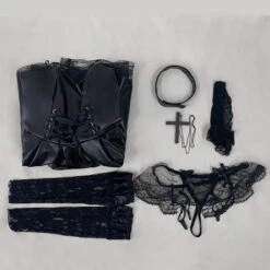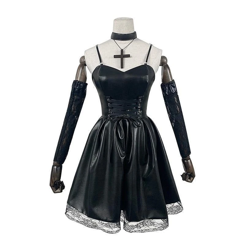 - Includes the cross necklace, choker, sleeves, garters, and dress!Â