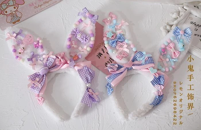 These luxuriously detailed pastel and perfectly fairy-kei kawaii bunny ears are a must have for any kawaii cutie wanting to embrace their inner baby bun!Â