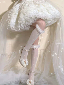Whether you’re dressing up for a special occasion or simply want to add a feminine touch to your everyday look, these lace socks are perfect. The silk texture combined with polkadot details and bow accents create a dreamy, kawaii aesthetic that will make any outfit stand out.