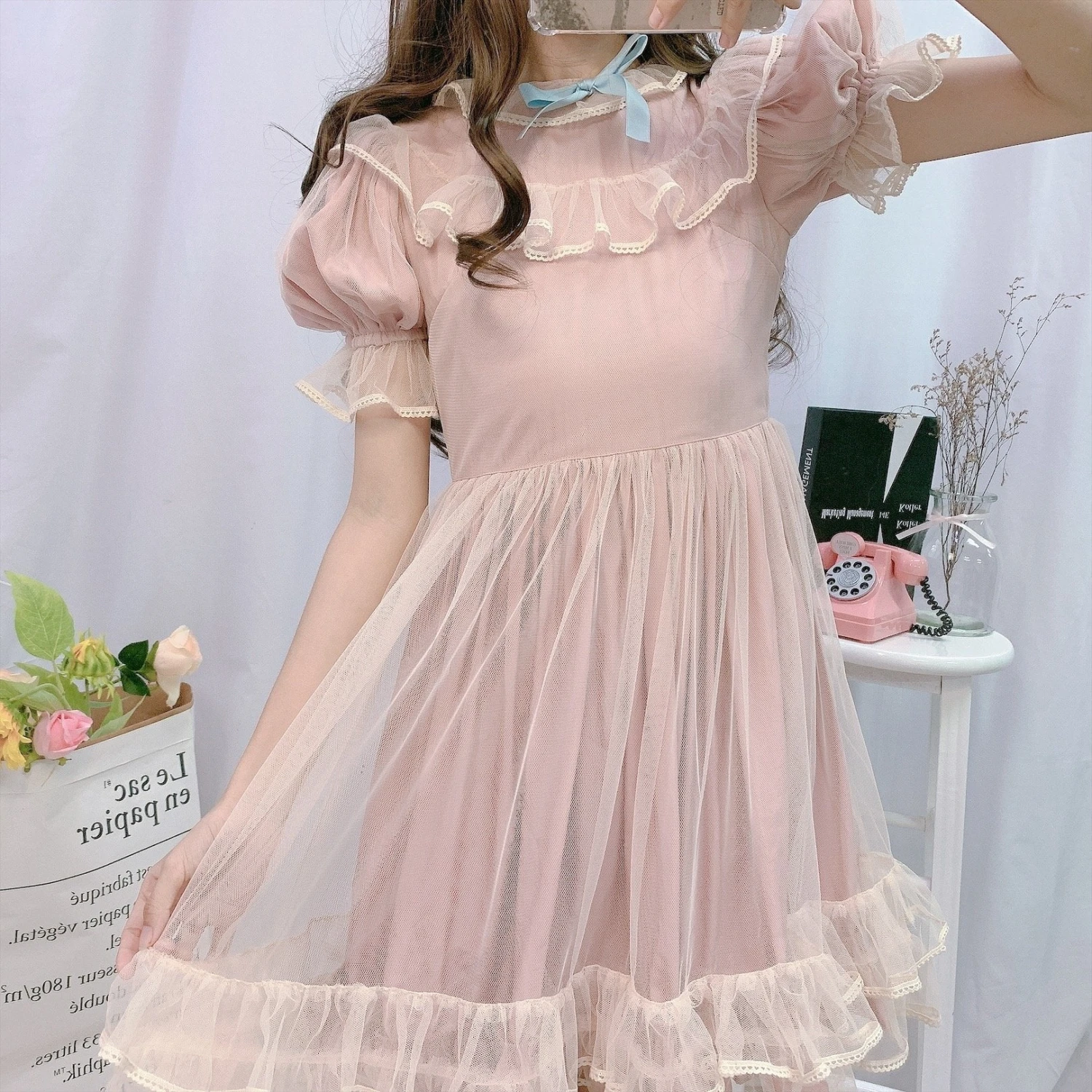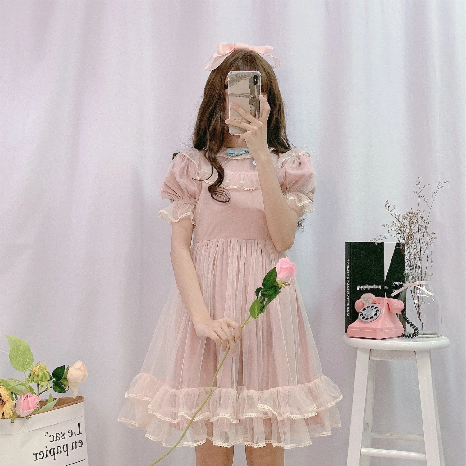 This innocent and girly faded pastel pink dress is simply the sweetest!