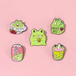 - 🎉 Choose from 5 Frogtastic Styles: Get ready for cuteness overload with these kawaii frog-inspired enamel pins! Each pin showcases a different froggy delight, from boba tea binging to refreshing fruit juice sipping!