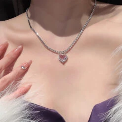 Shine like royalty with the Glittering Heart Necklace, the perfect accessory for adding a touch of elegance to your kawaii aesthetic!