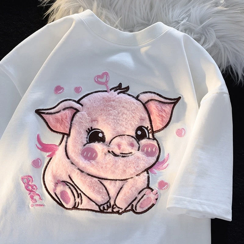 - Embrace the fluffiness and softness as you snuggle up in this delightful flocked piggy tee! 🐷💓