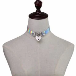 - This adorable holographic lock and key choker collar  has a cute genuine metal locket with a matching key to take it on or off.