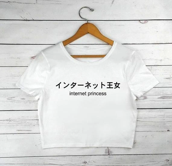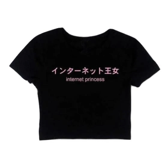 - This adorable black or white cropped belly shirt is perfect for princesses who spend all their time on the internet!