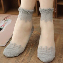 - These unique socks are made of a gorgeous clear fabric with dainty elegant lace in a variety of colors.Â