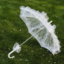 - Crafted with high-quality lace, the umbrella features ruffled edges that create a soft, dreamy vibe.