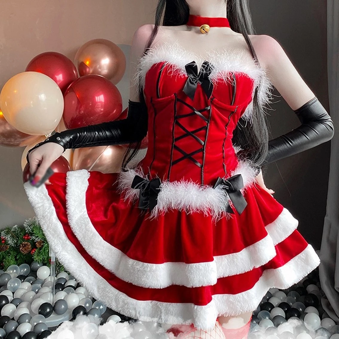 - A Christmas miracle, complete with EVERYTHING you need to embody the festive holiday spirit including matching christmas ear headband, sweet santa gloves,choker necklace!
