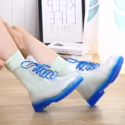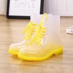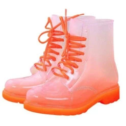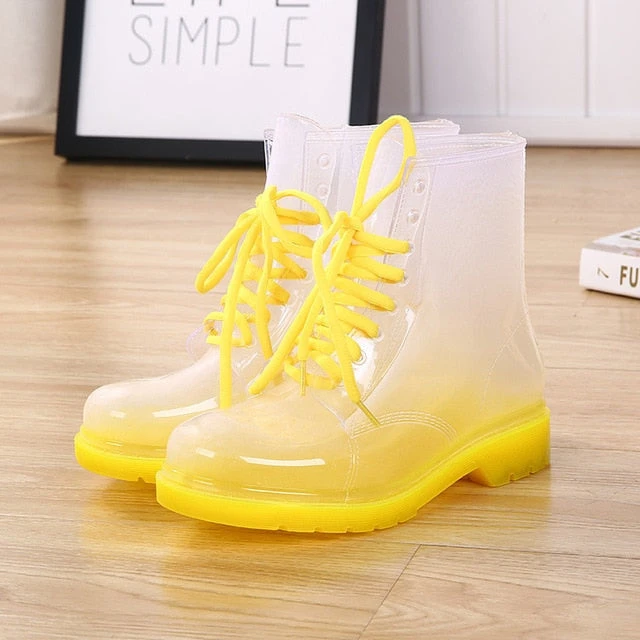 - A gorgeous pair of block heeled ombre style rain booties perfect for splashing in, while being super kawaii!