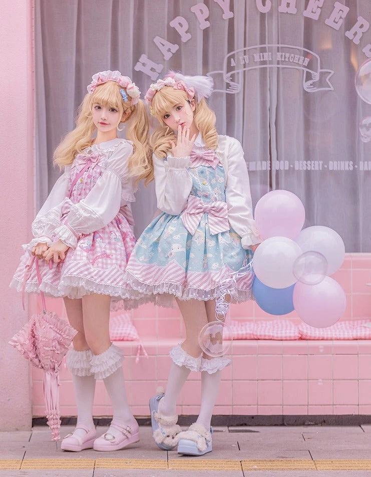 Step into a pastel dream with this fairy-kei inspired sweet dress, perfect for anyone who loves cute, girly, and whimsical fashion. Designed with delicate details and an adorable pattern, this dress is a must-have for any kawaii wardrobe!