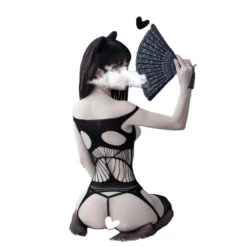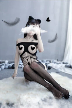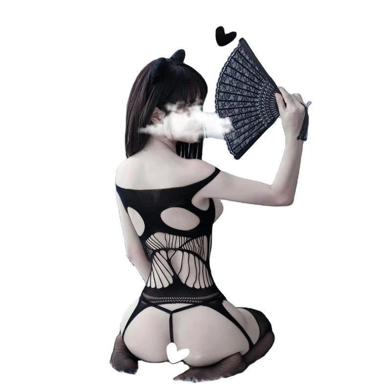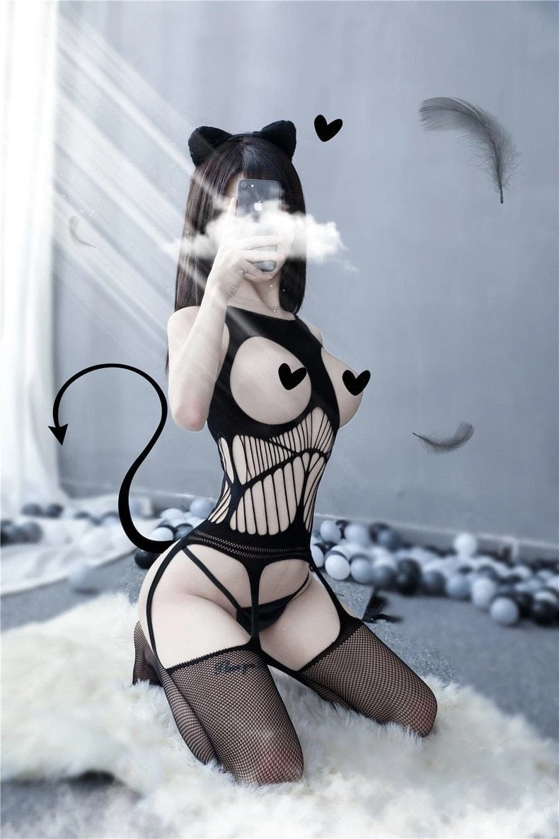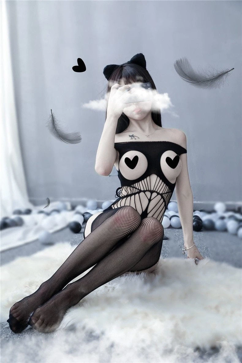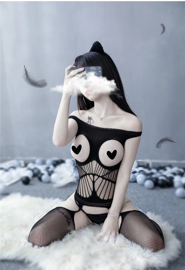 - This cute nylon mesh peekaboo style bodystocking has so many perfectly gothic details.