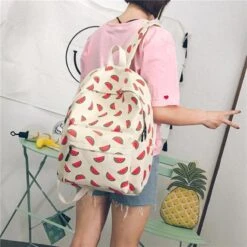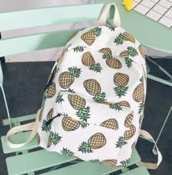 - This gorgeous tropical themed book bag features a bright and juicy pineapple print on a bright white back drop!