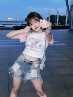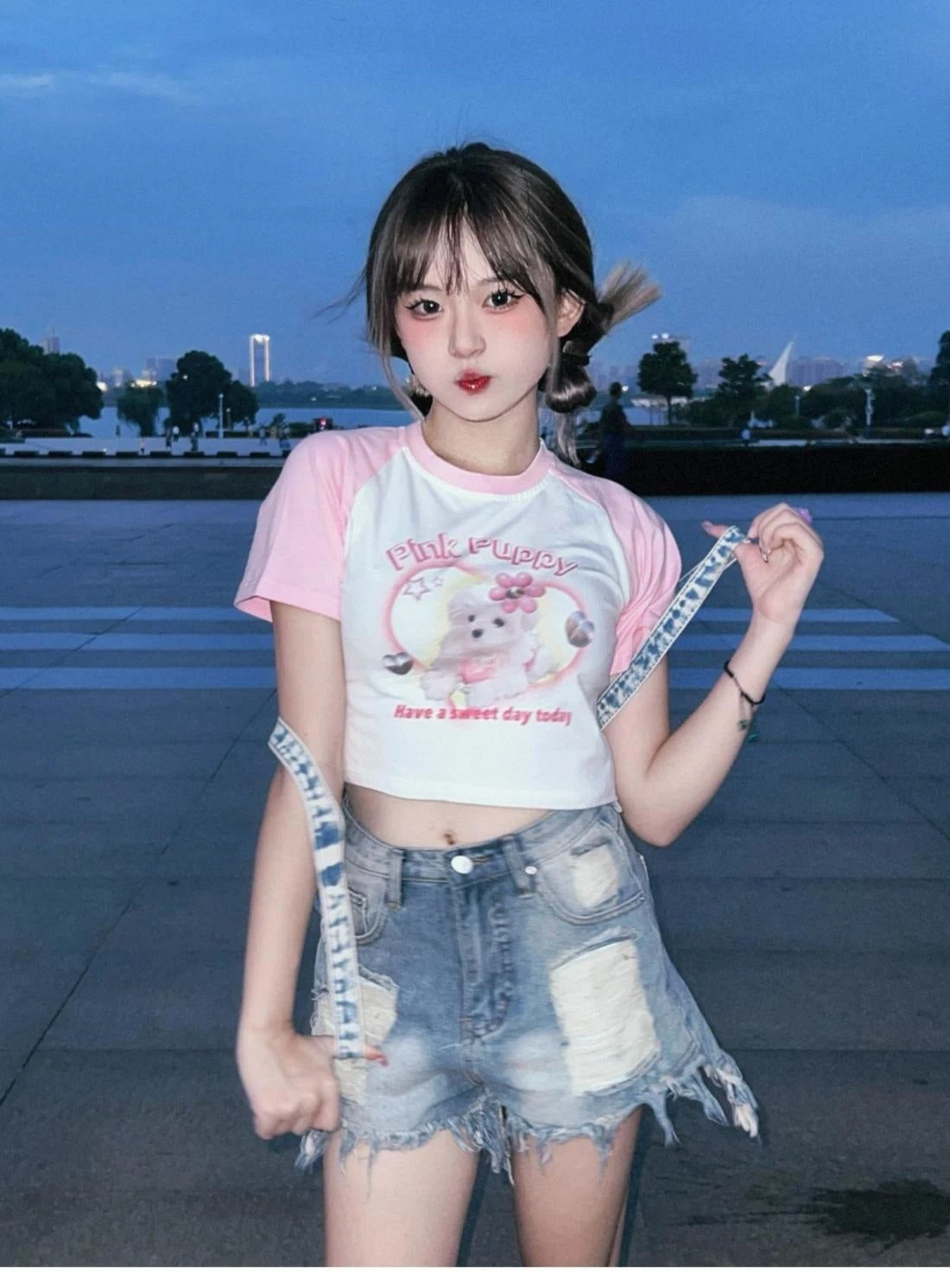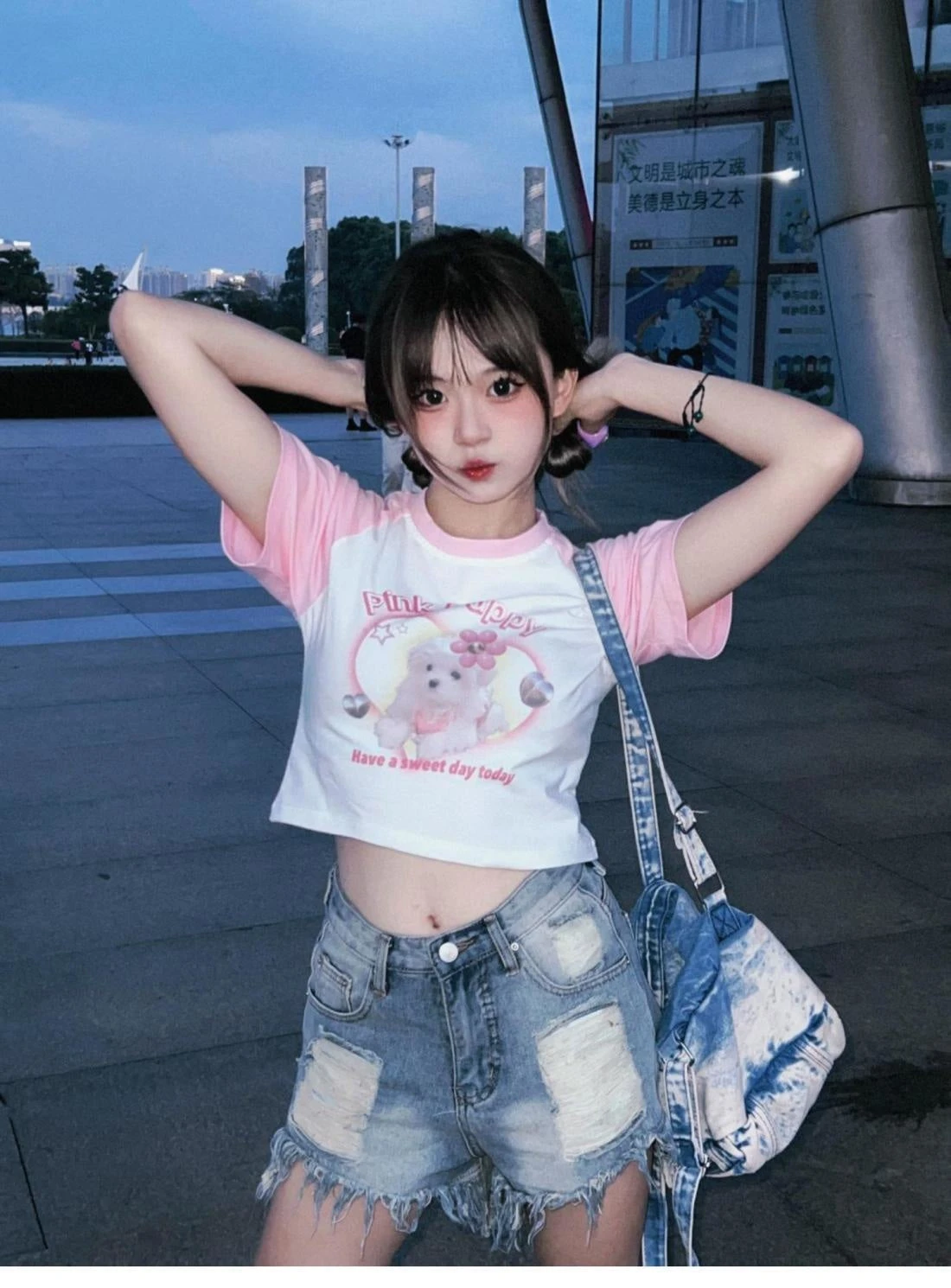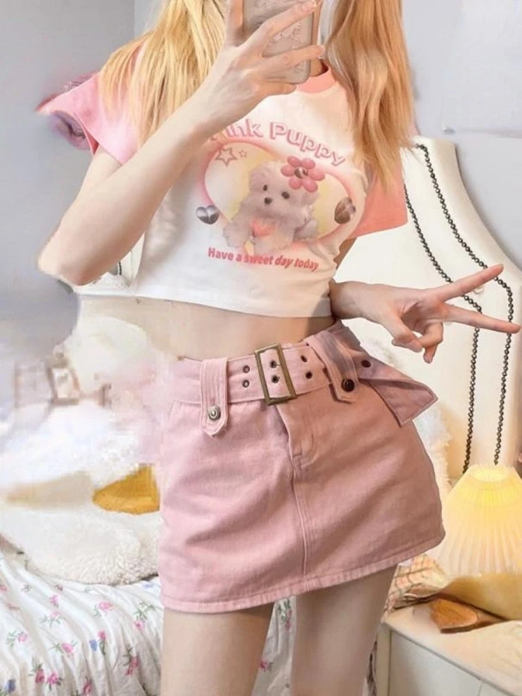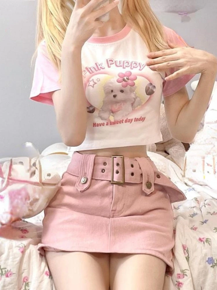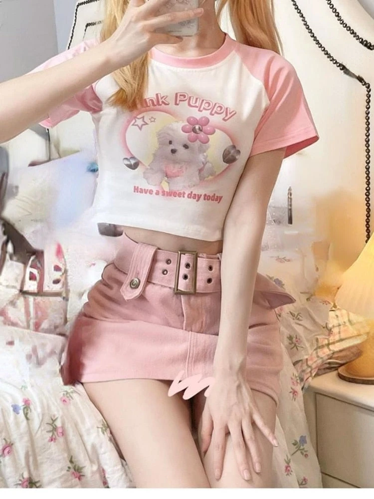 Introducing our “Pink Puppy Crop Top” – the ultimate fashion essential for every Y2K-loving, girly girl out there! 🐶💕