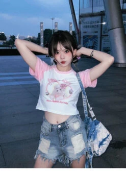 - Channel your inner 2000s diva with this two-tone pink & white short sleeve crop top, reminiscent of the most iconic era in fashion!
