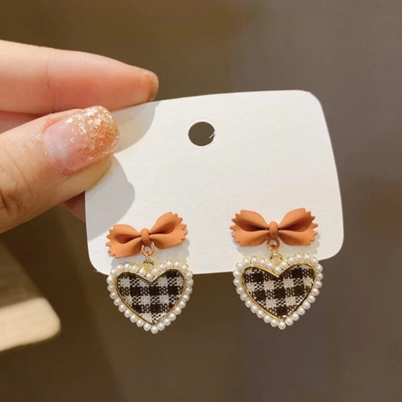 - These dainty and angelic dangly pink plaid heart flowers earrings are perfect for cuties who love all things soft, pastel, and fairy-like.Â