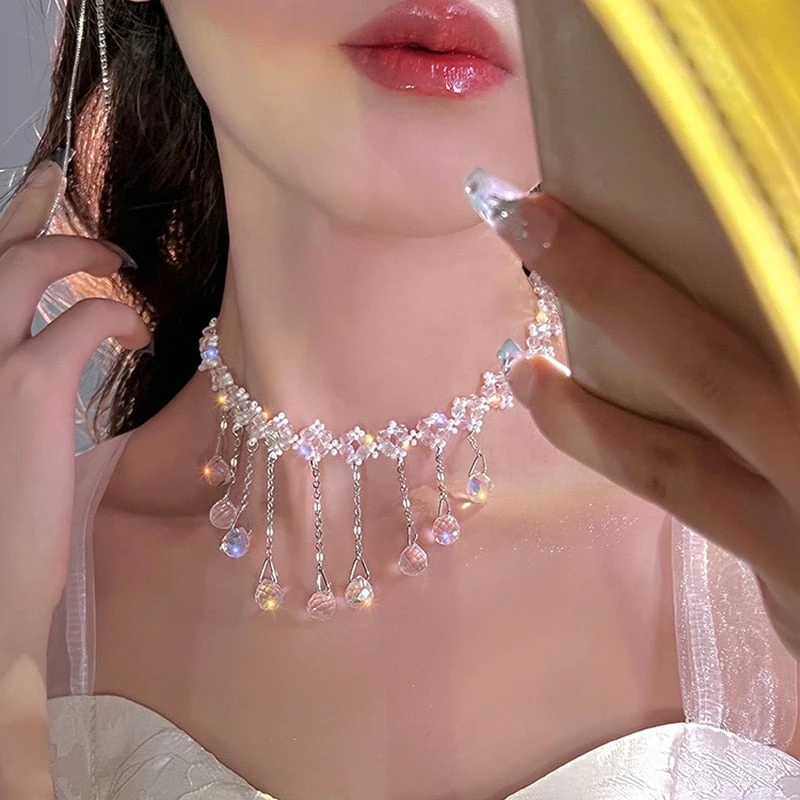 Add an ethereal touch to your look with this “Princess Water Drop Choker”! Perfect for those who love the kawaii aesthetic, this stunning necklace features delicate crystal-like water drops that catch the light beautifully, creating a radiant, eye-catching accessory for any outfit.