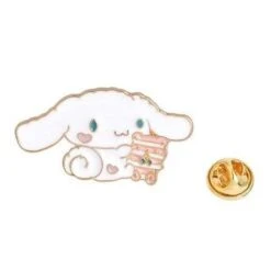 - A truly exquisite white puppy enamel pin featuring a cute pink layered cake – what’s not to love?
