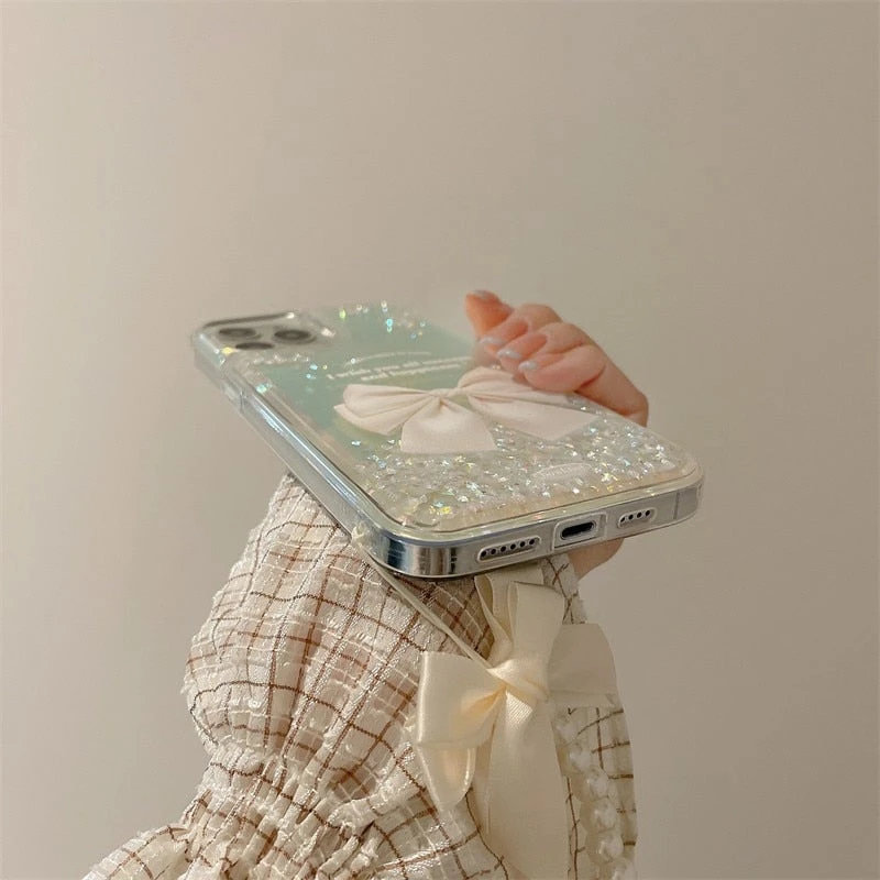 Transform your iPhone with this cute and kawaii Quicksand Ribbon Case and Lanyard, and enjoy the perfect blend of style and functionality!