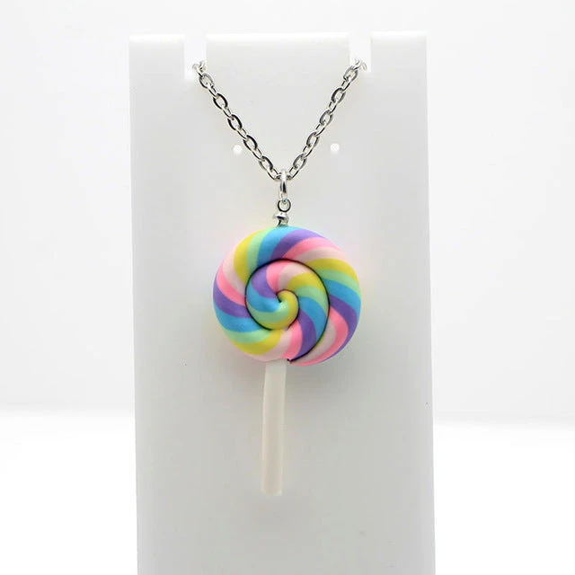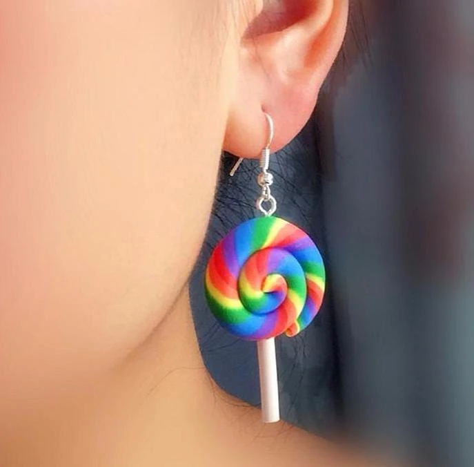 - A beautiful pair of polymer clay style lollipop rainbow earrings OR pendant necklace!
