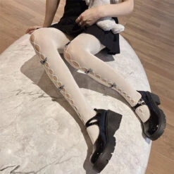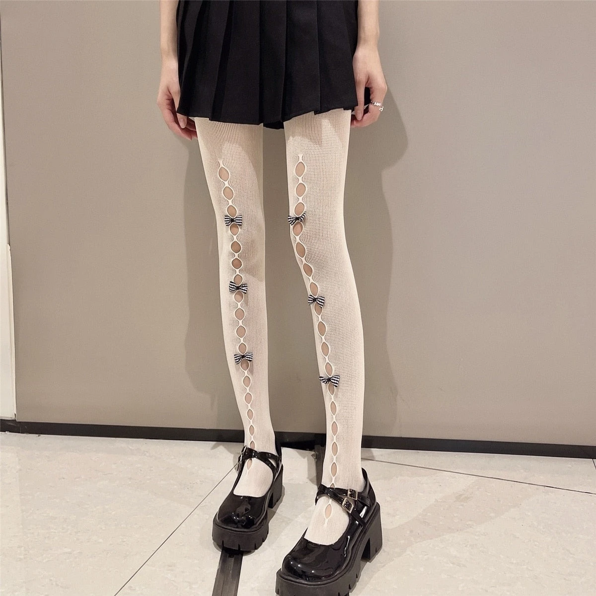 - These adorable kawaii ribbon embellished fishnet tights are the perfect fit for kawaii babes, or cuties looking for a little gothic edgyness!Â