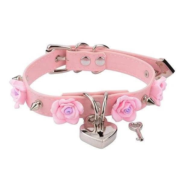 - These stunning vegan leather chokers have high quality rose flower petals adorned across the belt, with contrasting metal spikes for a edgy punk rock aesthetic meets girly!