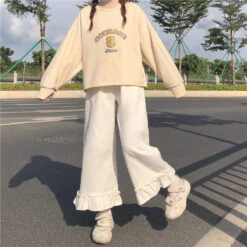 Elevate your closet with the Ruffled Bell Bottom Pants. Ideal for casual outings or dressing up for a special occasion, these pants are a must-have for any kawaii fashion lover.