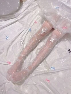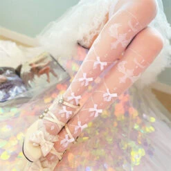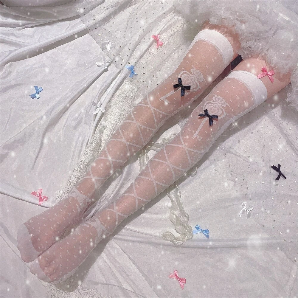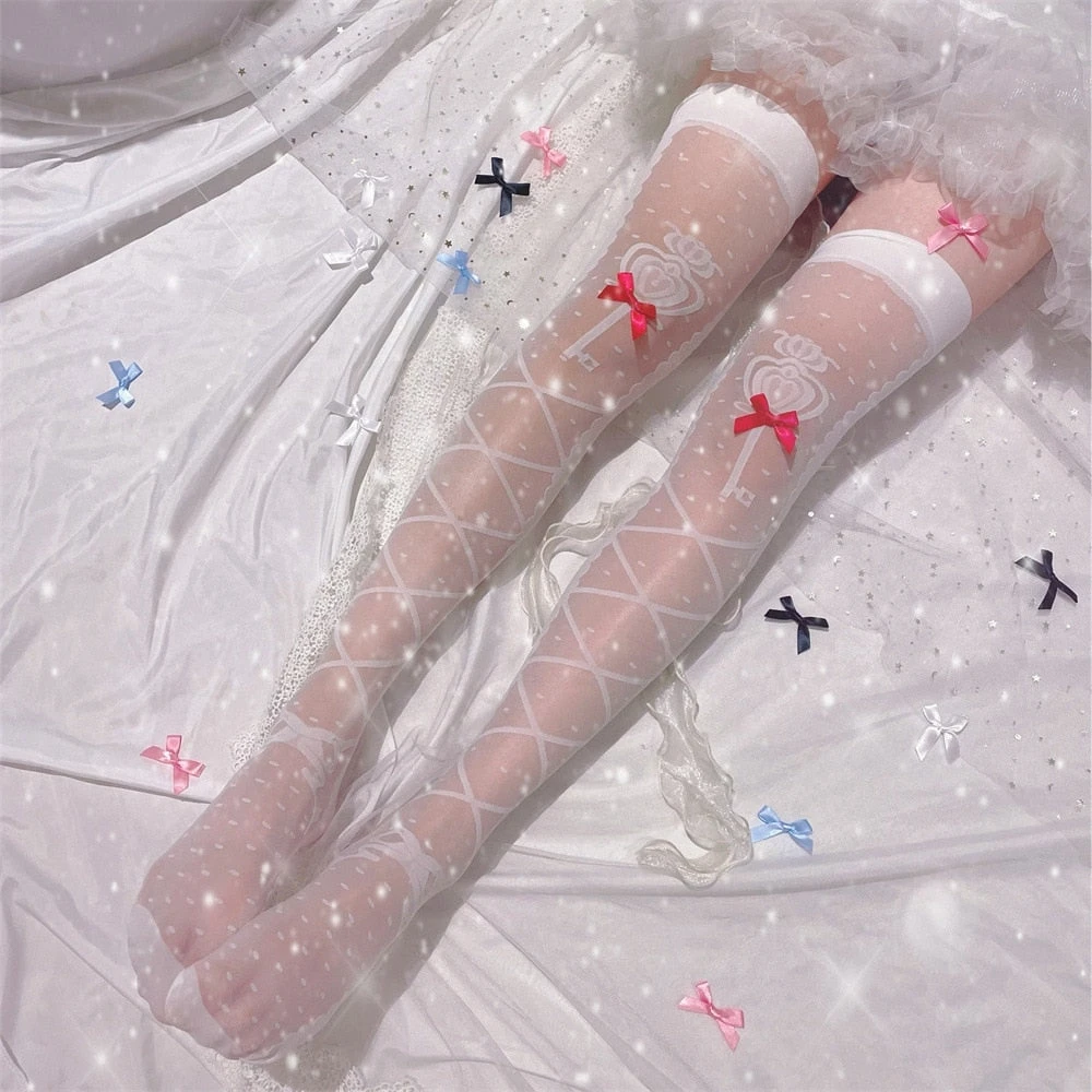 Elevate your kawaii look with our Sheer Nylon Thigh Highs! These stockings are the perfect addition to any fairycore or kawaii outfit, and will make you feel like a true princess. Here are some features of these elegant stockings: